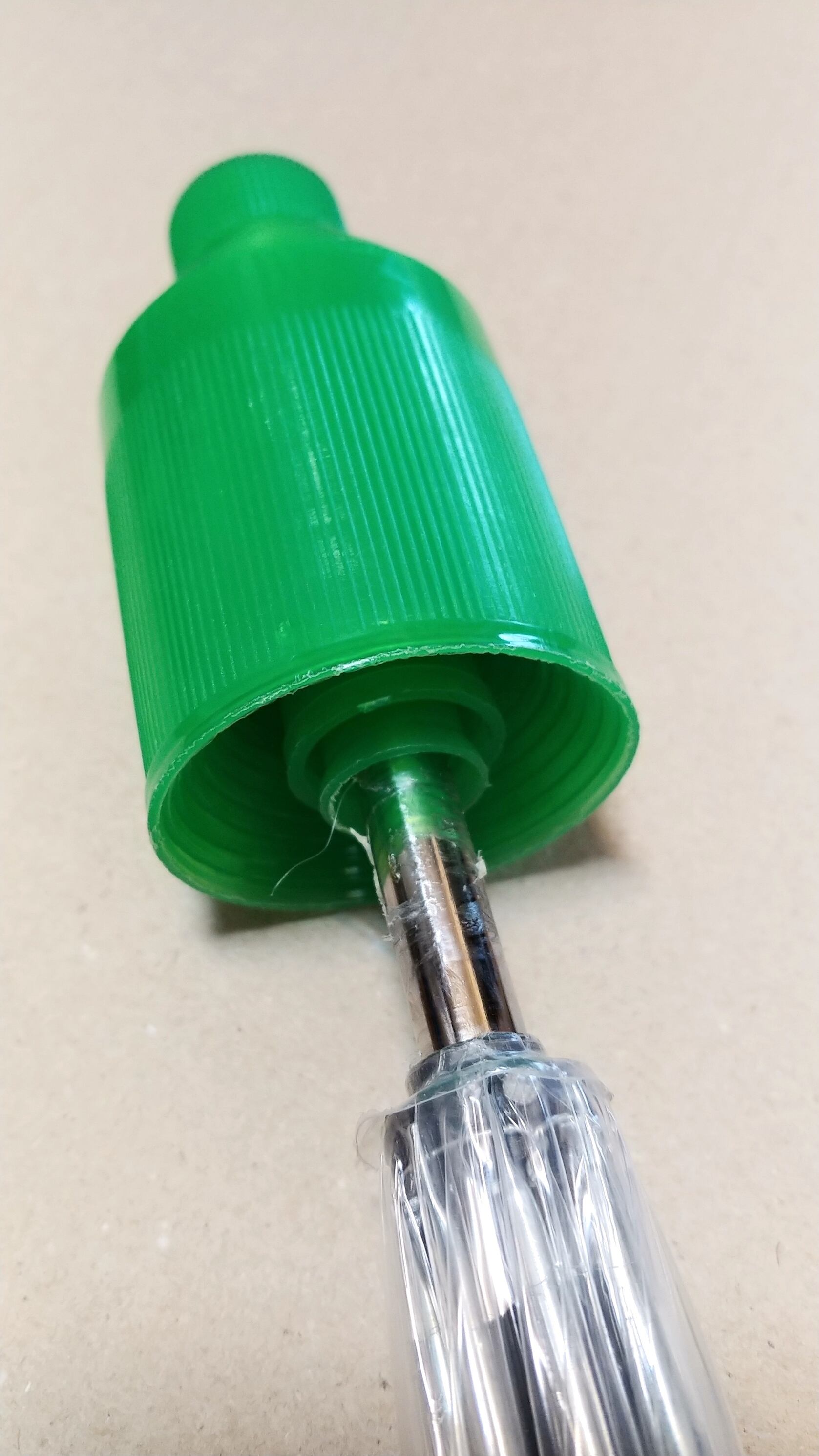 ・市販のビニール傘の先端部を取り外し、伸縮カバーを取り付けます。