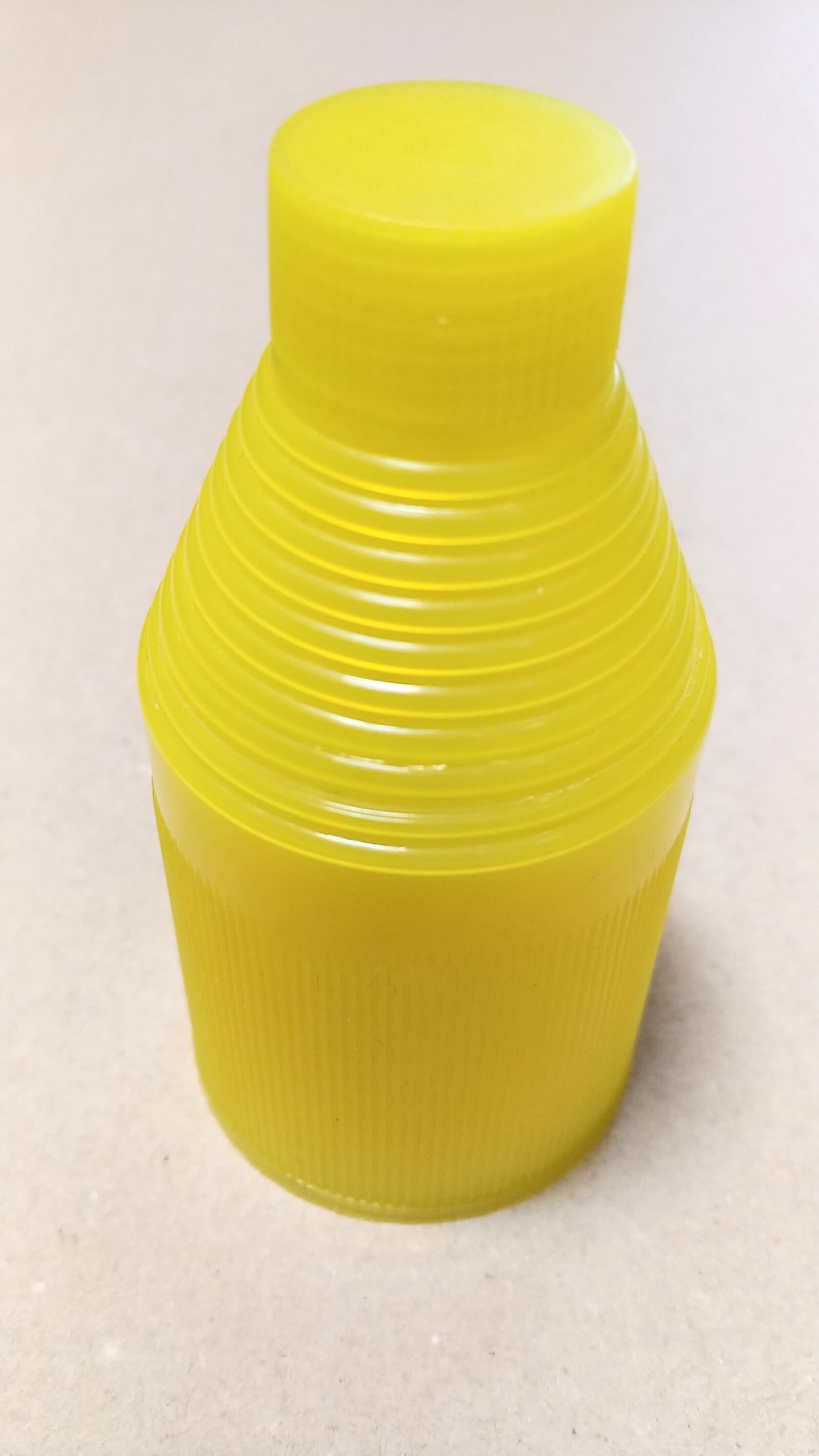 ・市販のビニール傘の先端部を取り外し、伸縮カバーを取り付けます。